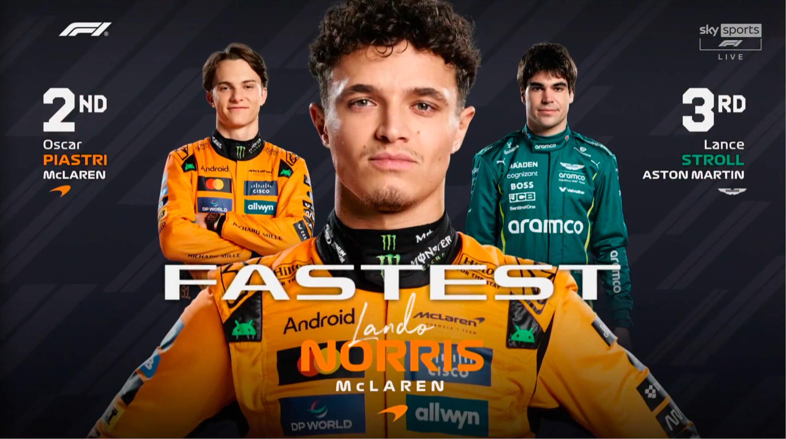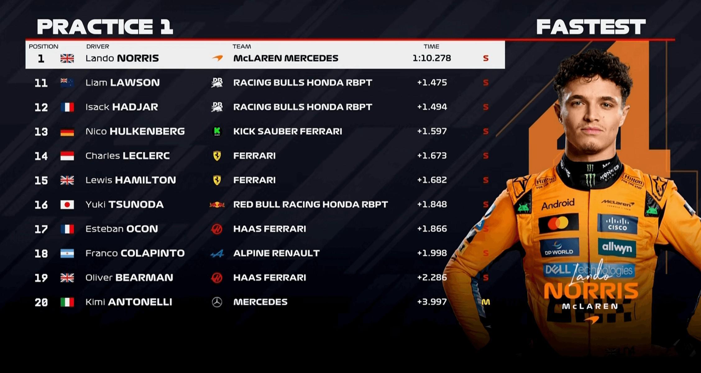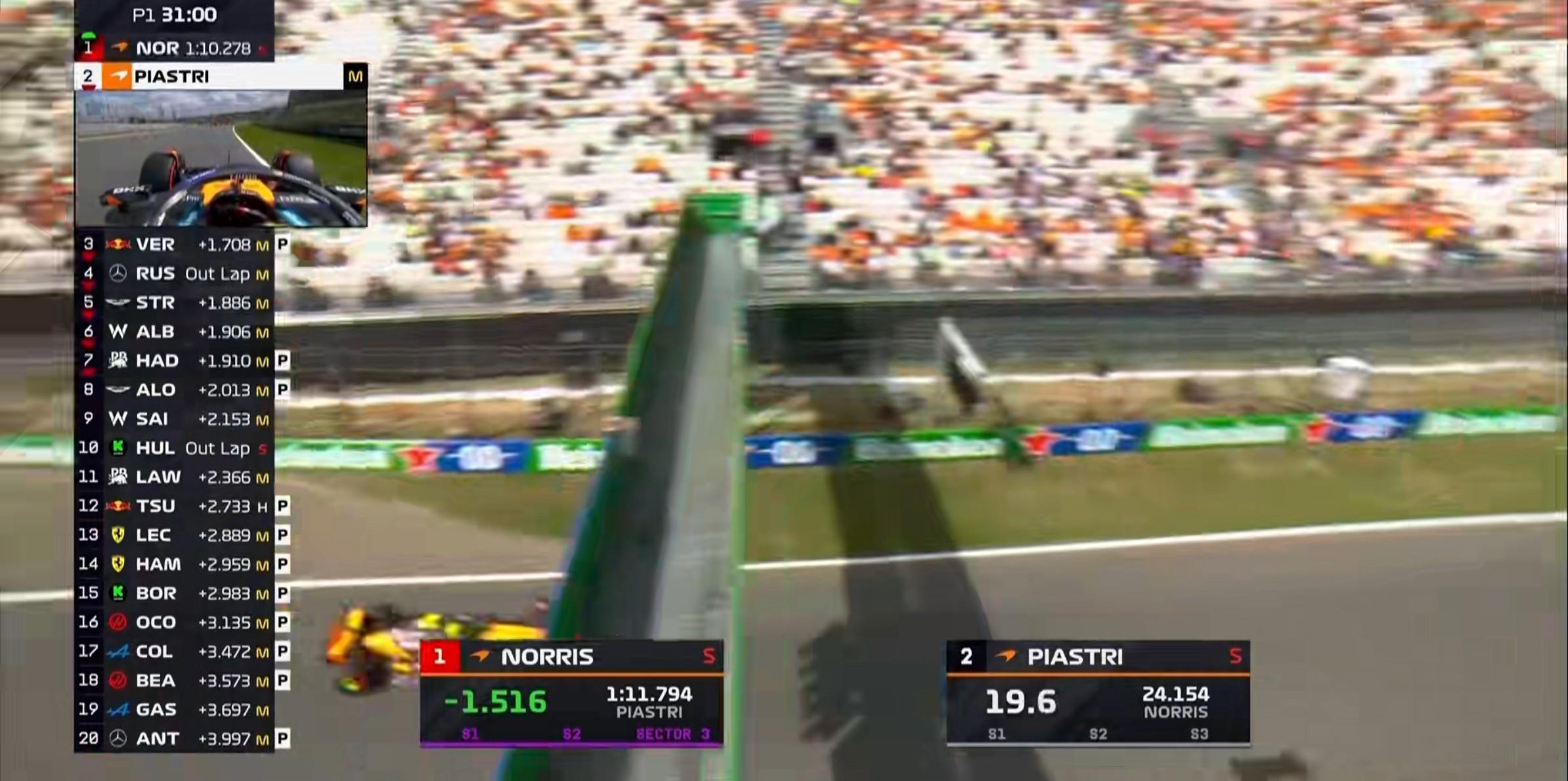 一练时间过半,诺里斯大幅刷新标杆成绩,领先队友1.5秒来到榜首!