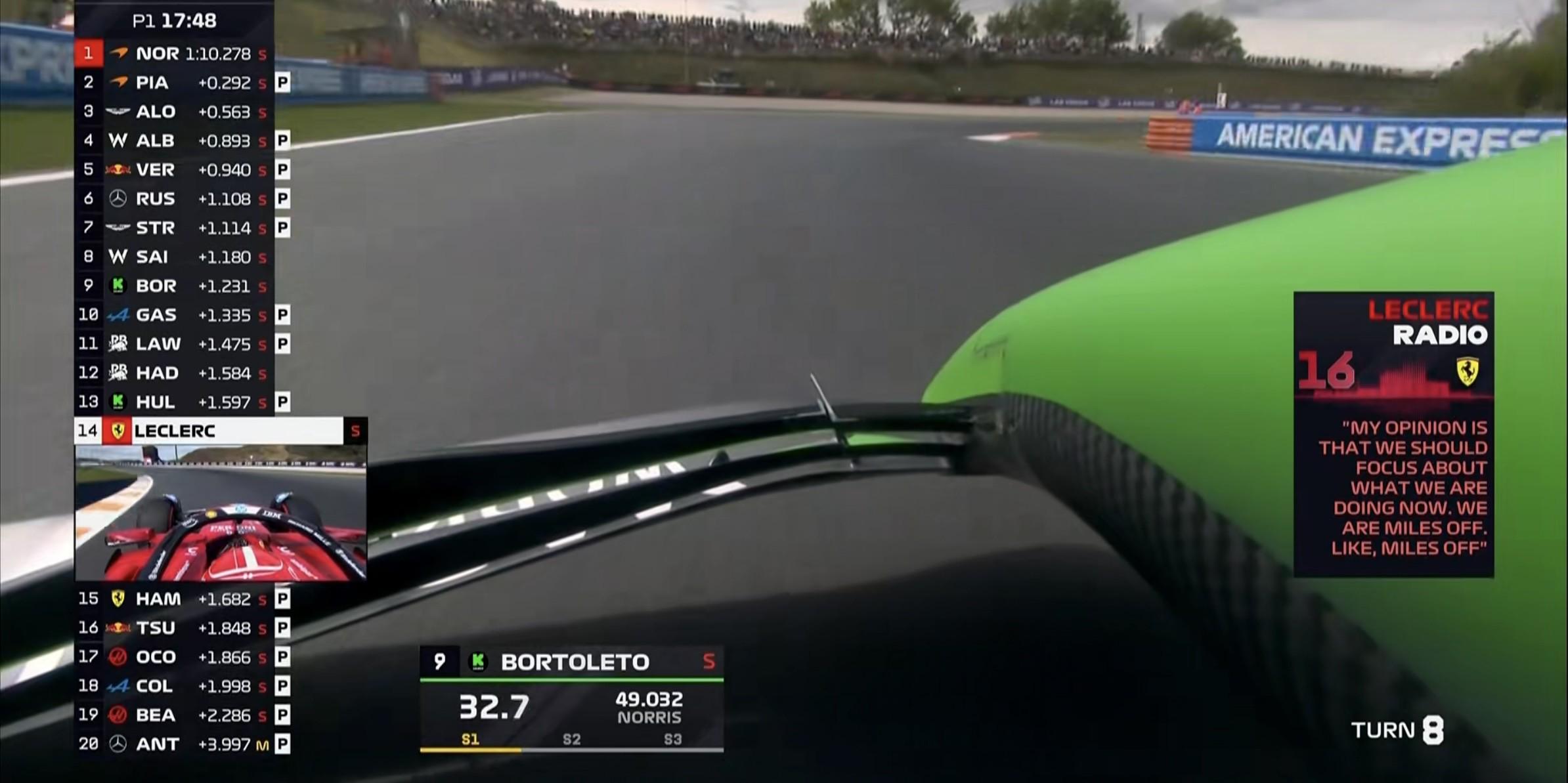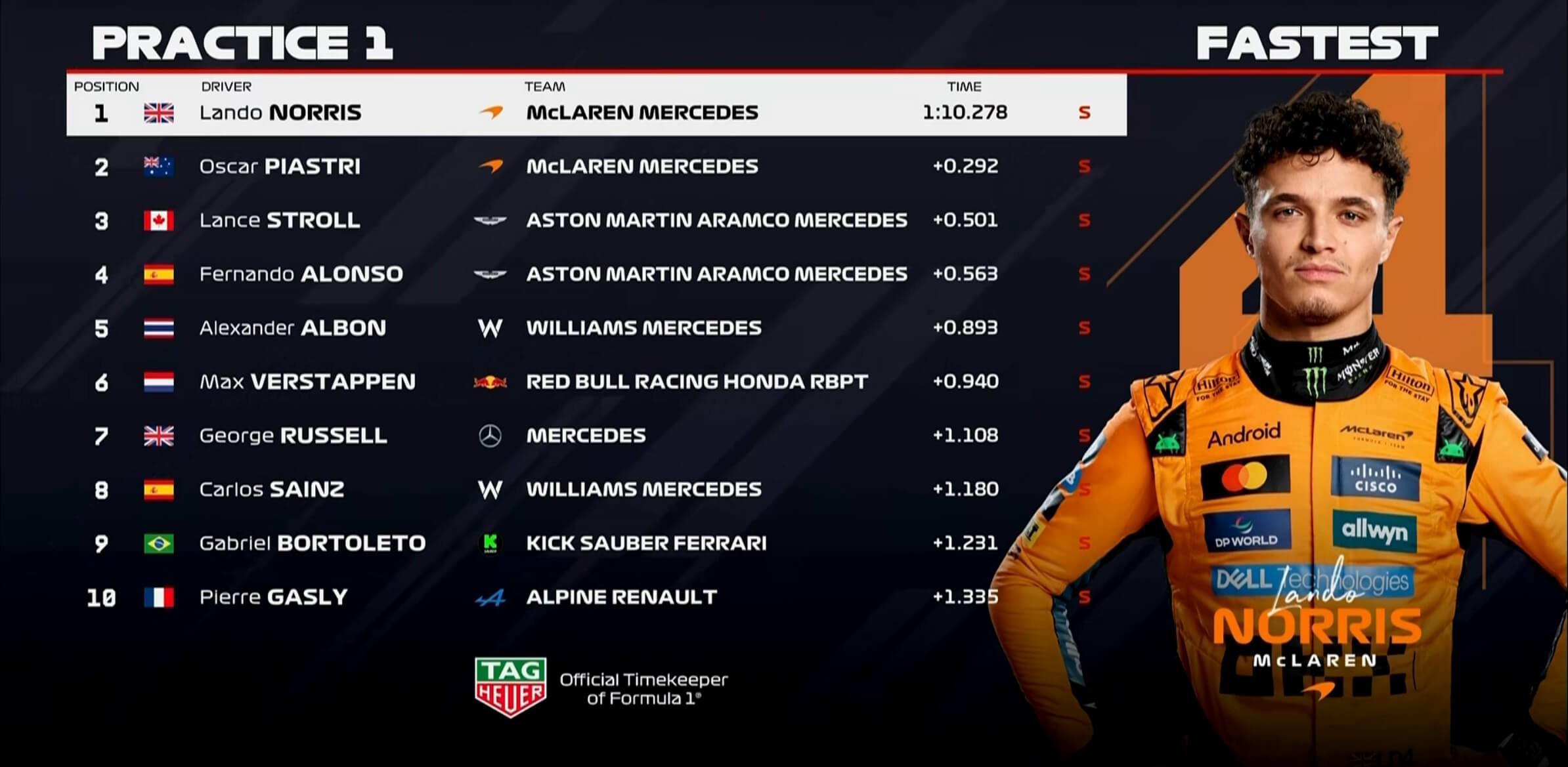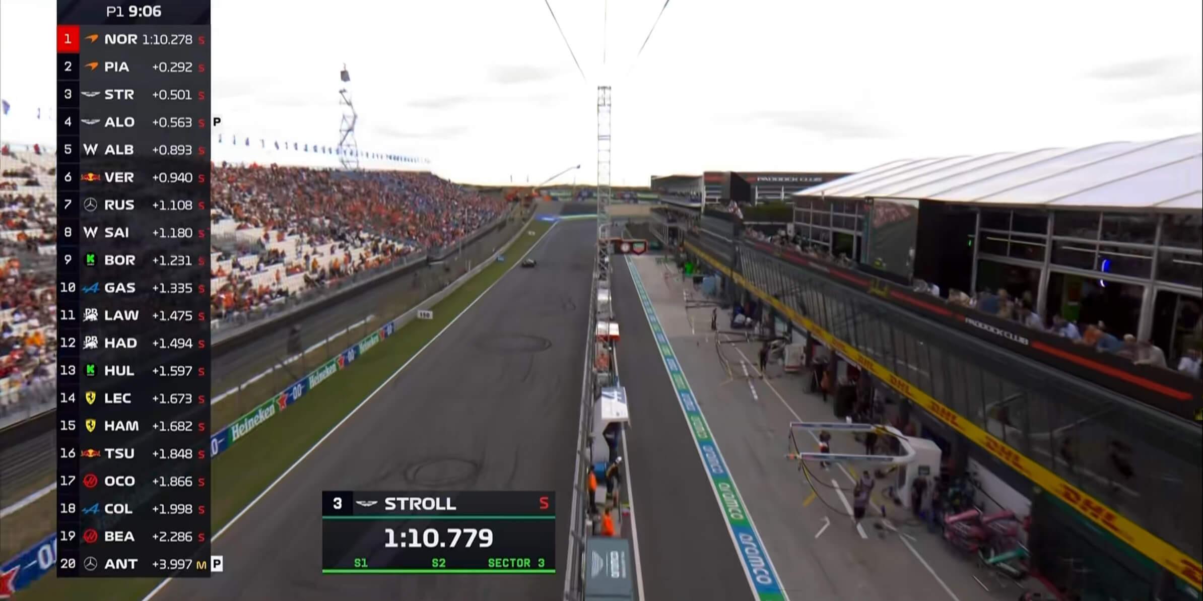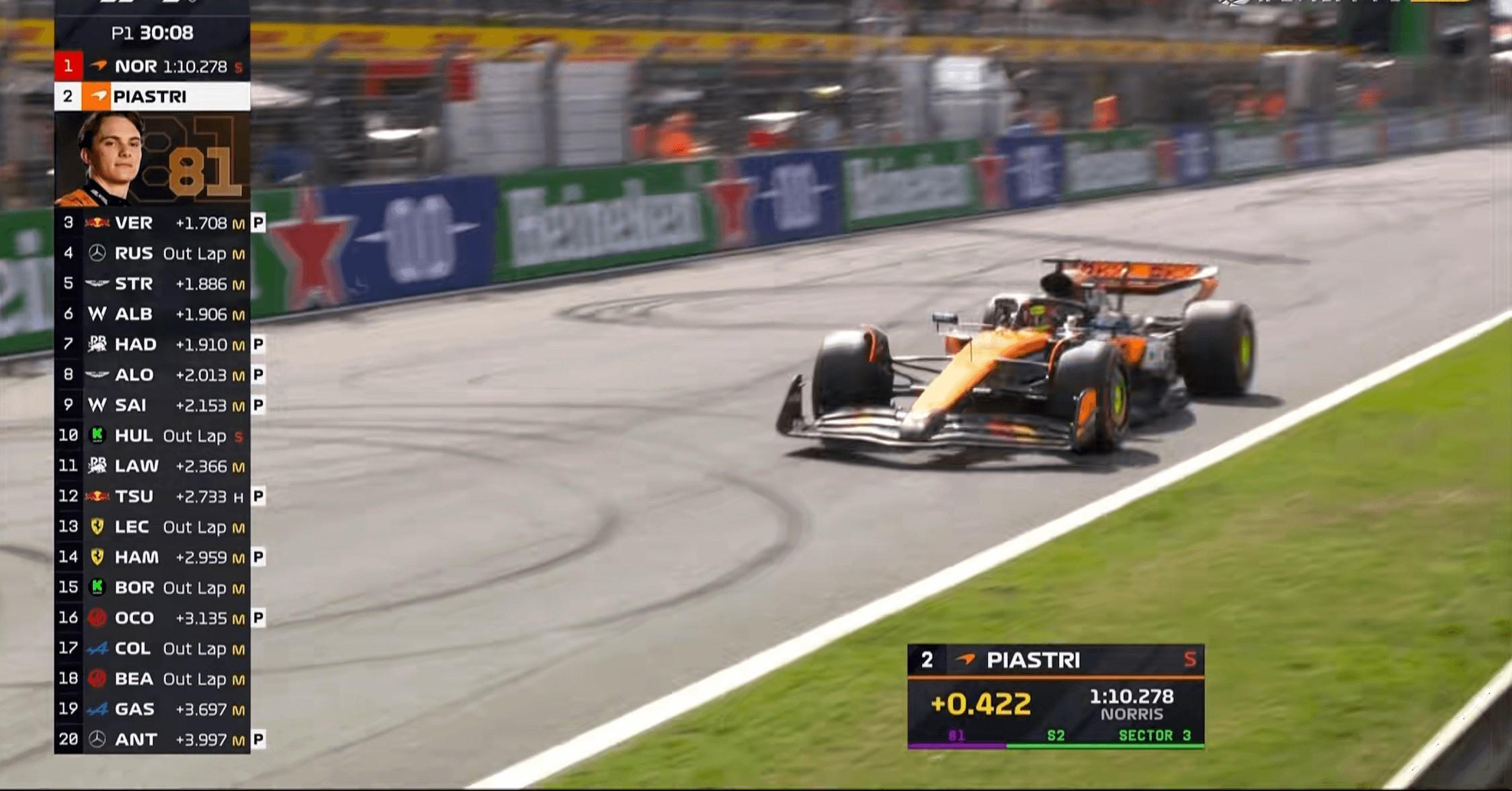 米乐-F1荷兰站一练:迈凯伦领跑,斯特罗尔第3,法拉利第14&第15